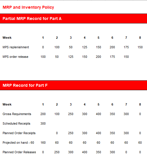8. MRP Inventory Policy Production Schedule